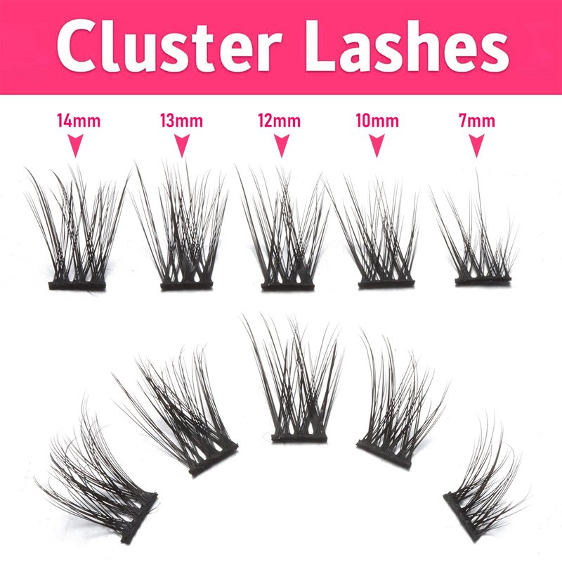 - 【How to Apply Cluster Lashes】: 1. Use tweezers to pick up the cluster lashes from the bottom instead of the tips; 2. Apply the cluster lashes glue and wait about 30 seconds; 3. Then apply the lashes on your upper or lower natural eyelashes. NOTE: Do not touch your eyelid