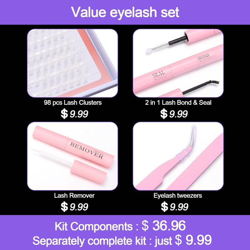 - 1 Pack False Lash Clusters With A Tweezer And Lash Glue(98 Pcs), (Color Optional)