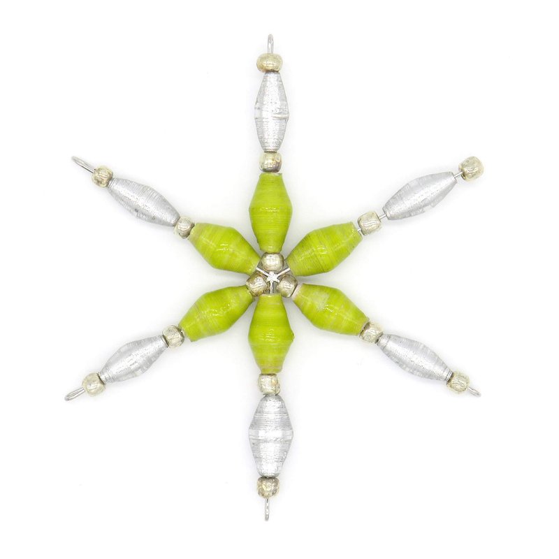 Outreach Uganda Christmas Ornaments – Stunning Silver & Chartreuse Star Ornament – Silver Tree Ornament - Eco-Friendly Tree Decorations - Holiday Gifts Handmade in Africa
