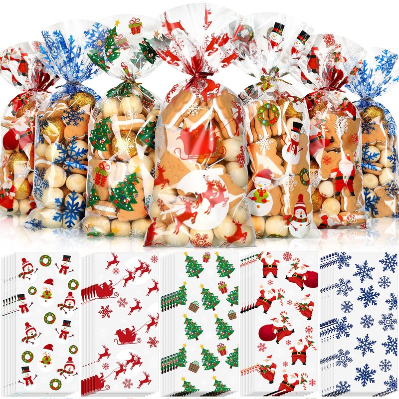 - Exquisite patterns: these Christmas cellophane bags have 5 different cute designs, including Santa Claus, Christmas trees, reindeer, snowman and snowflakes, delicate color combination is nice for Christmas party and will further enhance the Christmas atmosphere