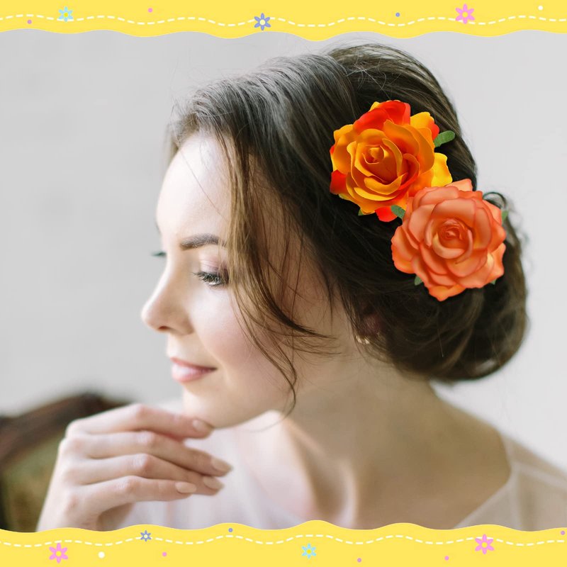 Outus 15 Pieces Flower Hair Clips Rose Flower Hairpin Clip Mexican Flower Pin Flower Brooch for Wedding Halloween, Medium(Stylish Colors)