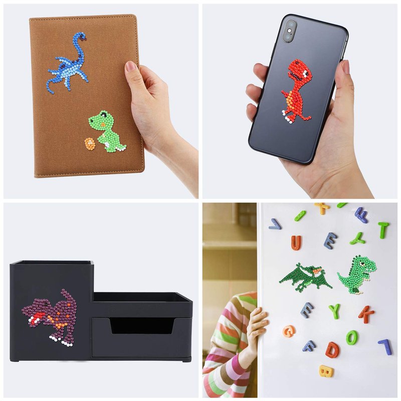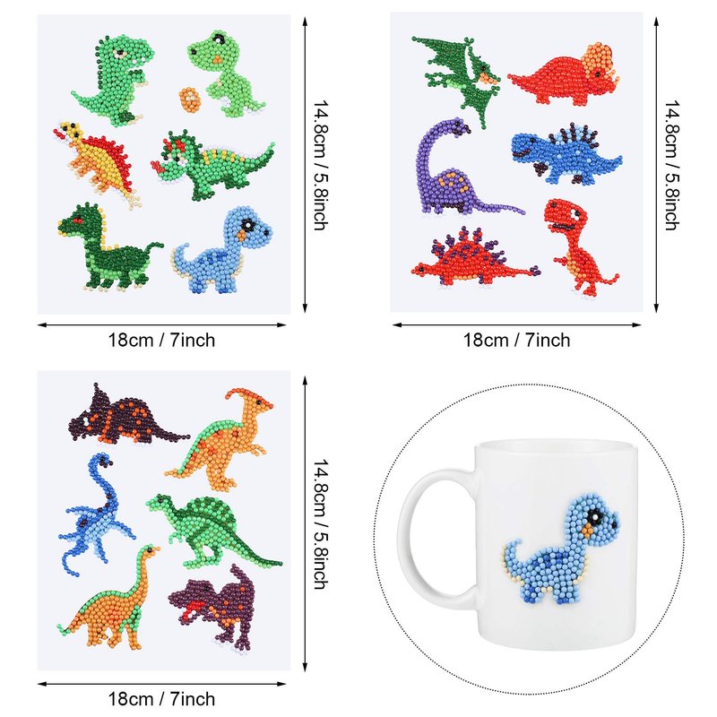 18 Pieces diamond stickers kit for boys girls and adult beginners, 5D DIY dinosaurs painting stickers paint by numbers kits handmade craft Decorate anywhere you like: Diamond stickers kit allows you to enjoy the fun of playing, and also be applied as an decorative ornaments, after finishing, you can applied in anywhere you like, such as, card DIY decoration, scrapbooking embellishments, phone, refrigerator, book and more. Wonderful DIY art activities. painting kit will allow you to experience a sense of achievement after you finished a painting, also can cultivate your and patience, coordination, ideal for boys and girls, adult beginners, a nice choice to spend during your pastime and leisure activity. Package includes: 1 Set of multicolor faux diamonds 3 Sheets of stickers (18 different designs in total) 1 x Drill pen 1 x Green tray 1 Piece of red clay Warm note: Choking risk may exist and not edible, adult supervision is needed. The colors may exist slight difference due to different screens, please understand.