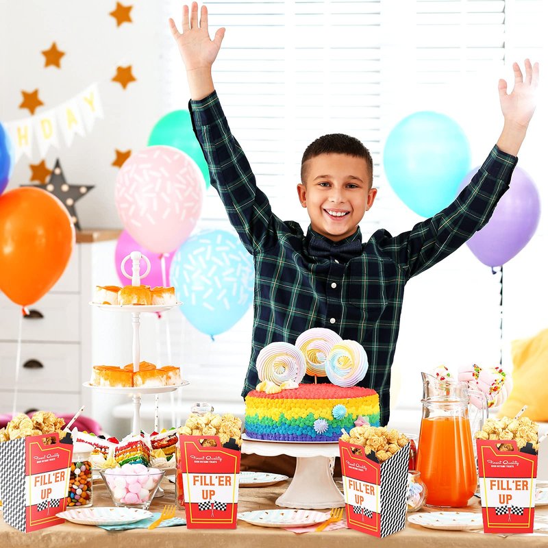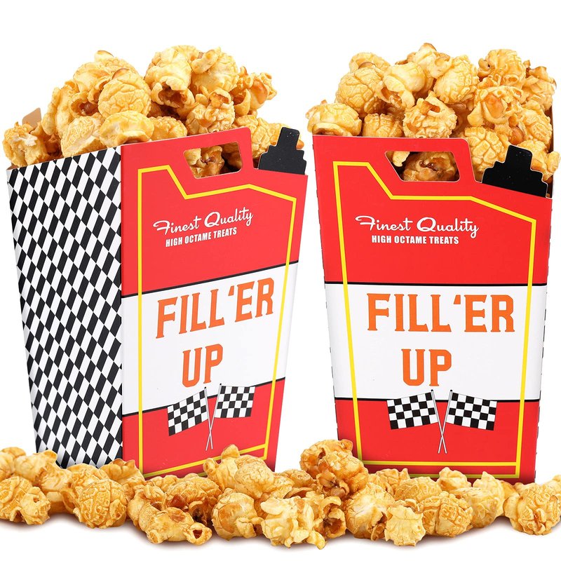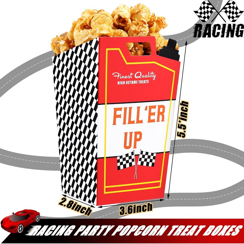 - Useful party supplies: racing popcorn favor boxes are suitable for various kinds of party food; You can fill them with sweets or salty snacks, such as, popcorn, caramel corn, chocolates, candy and other goodies, making your food look delicious and beautiful for the party