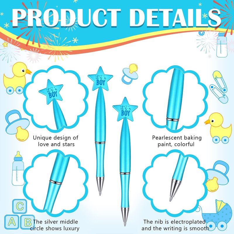 - Delicate Sense of Design: ballpoint pen is designed in blue color, features a five pointed star shape at the top, adorable and stylish, printed with words [it's a boy], well matching the baby shower party atmosphere, impressing other guests
