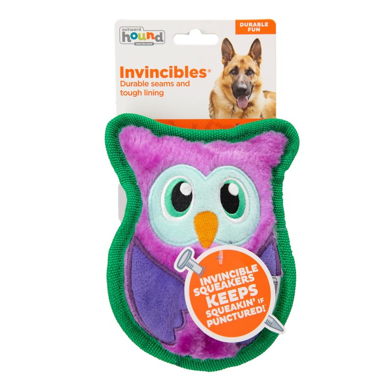 Outward Hound Durablez Tough Plush Squeaky Dog Toy, Owl, Purple, XS