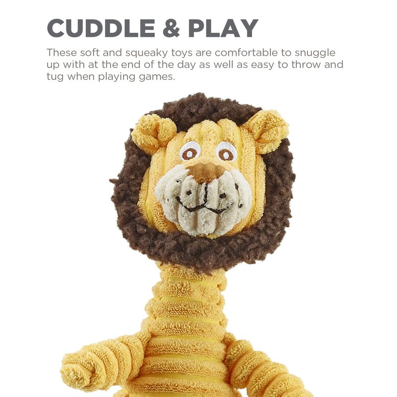 - CUDDLE & PLAY: These delightfully soft and squeaky dog toys are comfortable to snuggle up with at the end of the day as well as easy to throw and tug when playing games of fetch, toss, catch, and more!