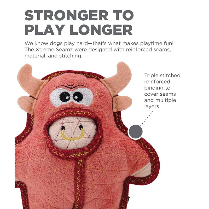 Outward Hound Xtreme Seamz Bull Squeaky Plush Dog Toy - Reinforced Dense Stuffing Plush Toy