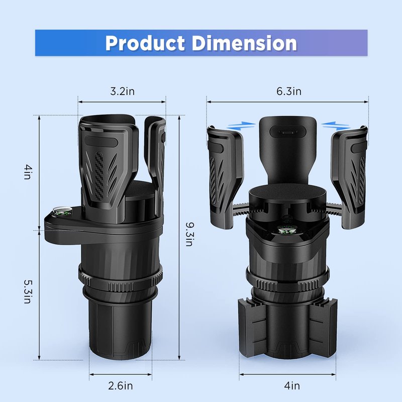 - Expandable & 360° Rotation: Doesn't take up space and can be folded into an integral cupholder when you don't need the extender