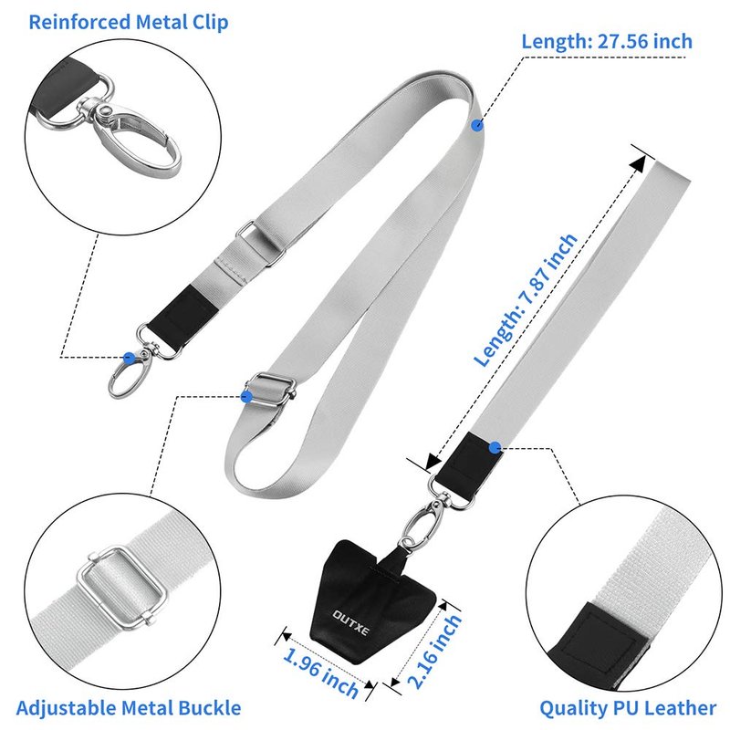 OUTXE Phone Lanyard - 4× Pads, 1× Adjustable Neck Strap, 1× Wrist Strap, Nylon, Compatible with All Smartphone
