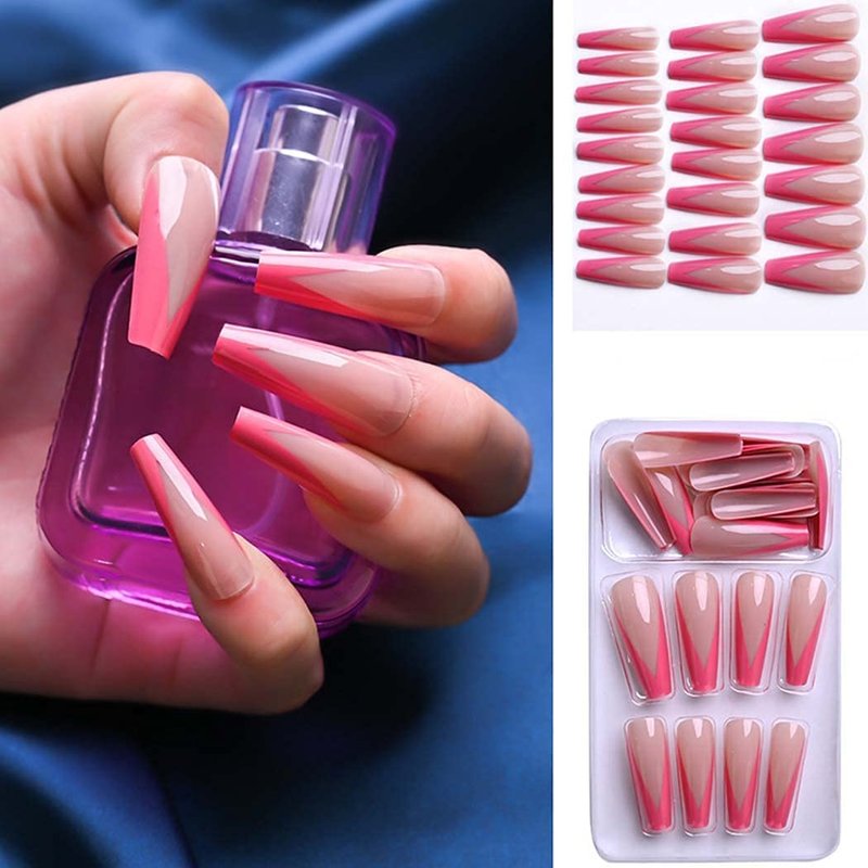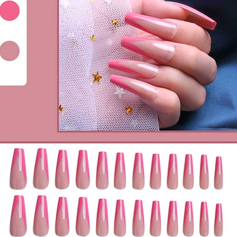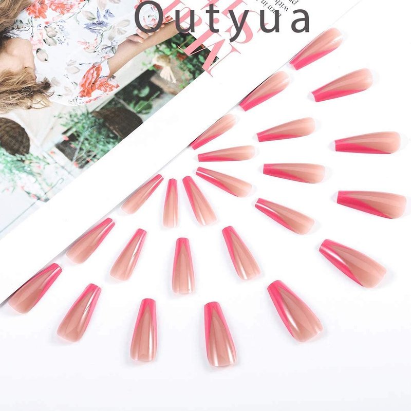 Outyua Hot Pink French Press on Nails with Designs Glossy Extra Long Fake Nails Coffin False Nails Full Cover Acrylic Nails 24Pcs (Glossy)