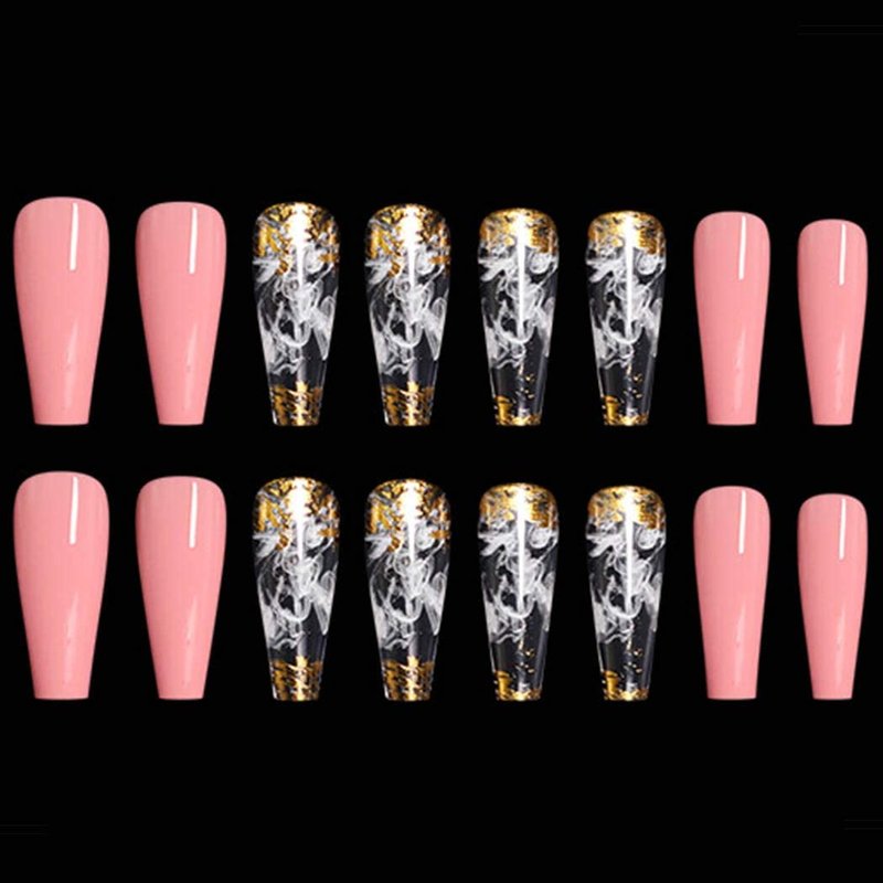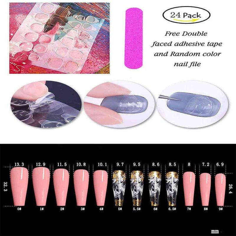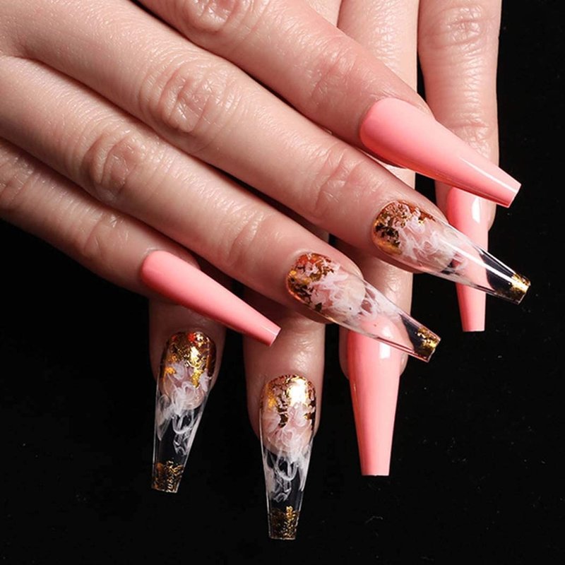 Outyua Smoke Pattern Fake Nails Pink Coffin Extra Long Press on Nails with Designs Glossy Ballerina Acrylic False Nails Stick on Artificial Nails 24Pcs (Pink)