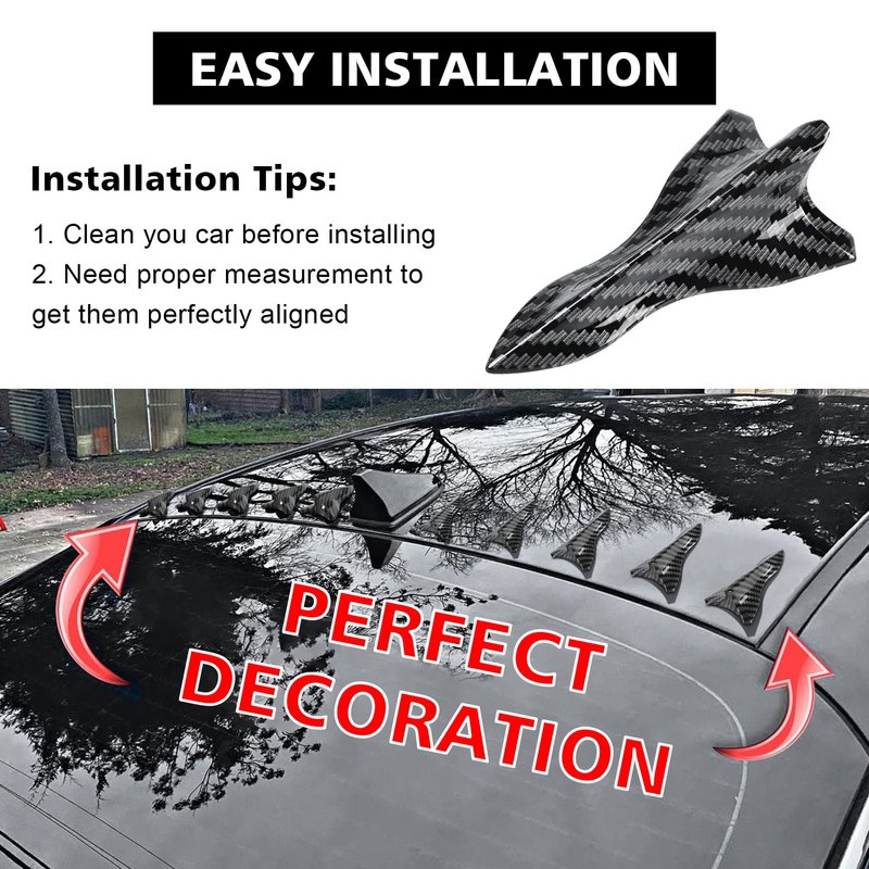 Ouzorp 10Pcs Air Vortex Generator Carbon Fiber Pattern Diffuser Shark Fin Set Kit Compatible with Spoiler Roof Wing Pointed