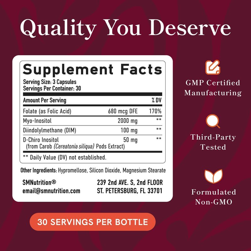 - ONE MONTH SUPPLY: Ovarian Support Complex by SMNutrition is formulated Non-GMO, Third-Party Tested, and manufactured in a facility that is certified GMP compliant with NSF standards.