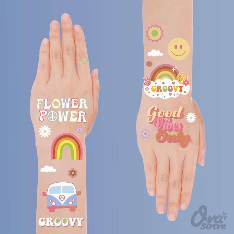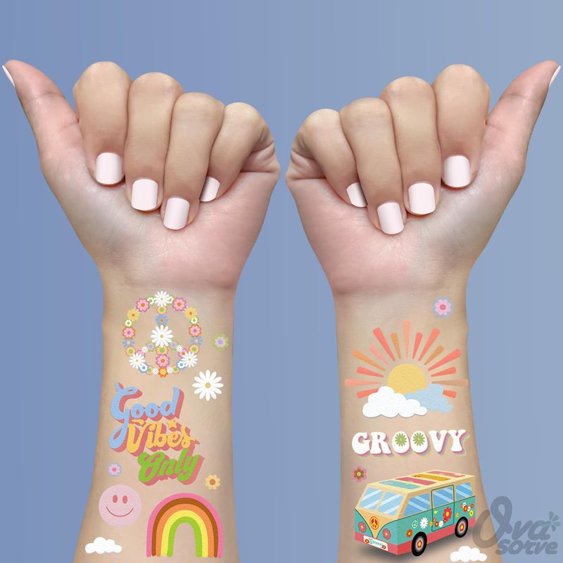 - Peace Out! Our groovy tattoos are the festive decor you've been looking for. From children to teenagers, everyone can find joy in it.