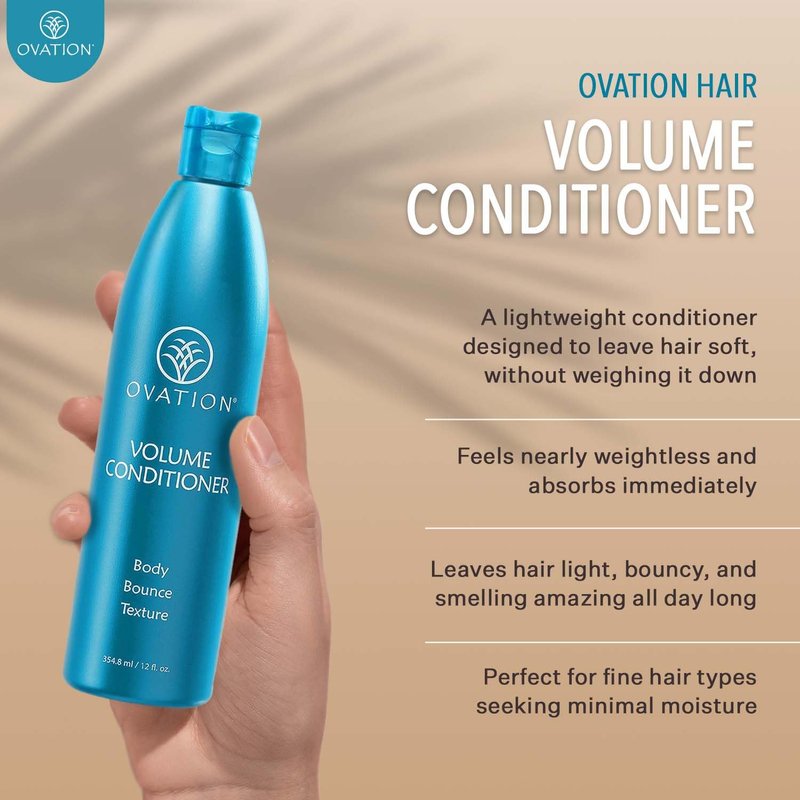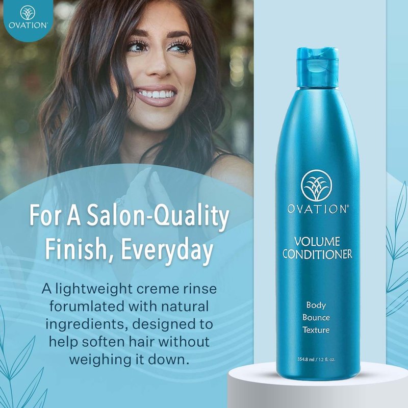 - Salon-Quality Conditioner: Our volumizing hair conditioner is a lightweight creme rinse designed to help soften hair without weighing it down. It feels nearly weightless on damp hair and absorbs immediately. Then leaves hair light, bouncy, and smelling amazing all day long! We recommend using this with the Ovation Hair Volume shampoo for best results.