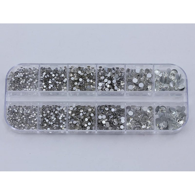 - Allstarco's Over 2100 flat back tiny glass rhinestone kit comes in 6 different sizes which are perfect for your nails!