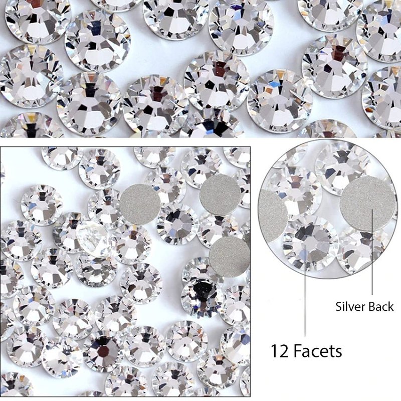 - This product includes 1 storage box of flat back crystals of the chosen color. Material: Glass Crystal.
