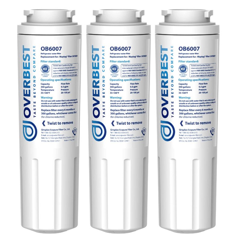 - [High-efficiency filtration] The Overbest replacement refrigerator filter for Maytag UKF8001 by Overbest is NSF 42 certified to reduce chlorine by up to 97% while improving the taste of water. This is how we ensure safe and delicious water for you and your family.