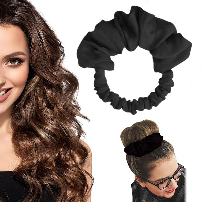 Overnight Hair Curlers for Long Hair | No Heat Curl Wrap with Soft Scrunchie (Black)