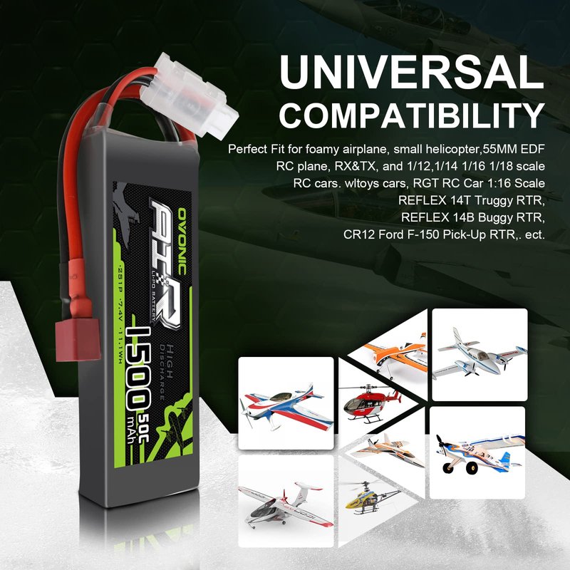 - 🔋Strong Compatibility - Compatible with foamy airplane, small helicopter, 55MM EDF RC plane,RX&TX, and 1/12,1/14 1/16 1/18 scale RC cars.wltoys cars, RGT RC Car 1:16 Scale Truck REFLEX 14T Truggy RTR REFLEX 14B Buggy RTR CR12 Ford Pick-Up RTR Carson 1:10 Street Rebel 2wd X10 2.4ghz RTR. For safety, please use the OVONIC dedicated charger to charge your battery. For more information, please search "OVONIC Mate 1" and "OVONIC X1" on Amazon.