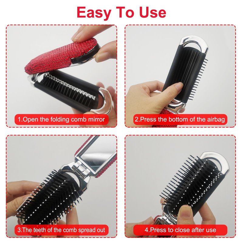 - Portable Hair Brush,Perfect for Travel:The folding hair brush is very fun to use.It has a compact size,portable and lightweight,very easy to handle,convenient to use both for adult and children,perfect to put it in your bag when traveling