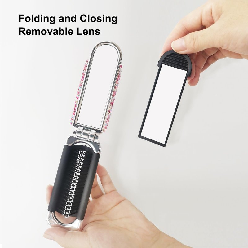 - ✨【Both For Men and Women】The foldable hair brush with mirror is not only suitable for traveling women, but also for men. You can use the compact brush for hair, wigs even for your beard.The massage particles at the top of the comb, which can massage the scalp and reduce pressure.