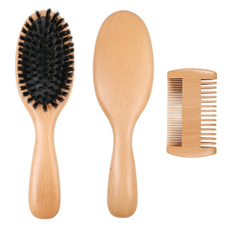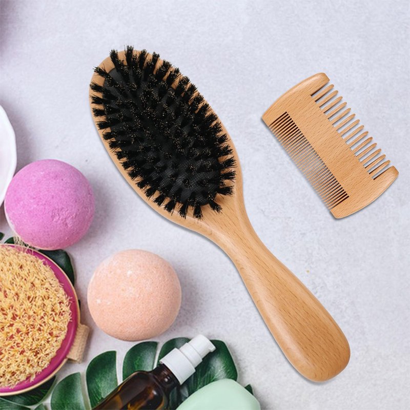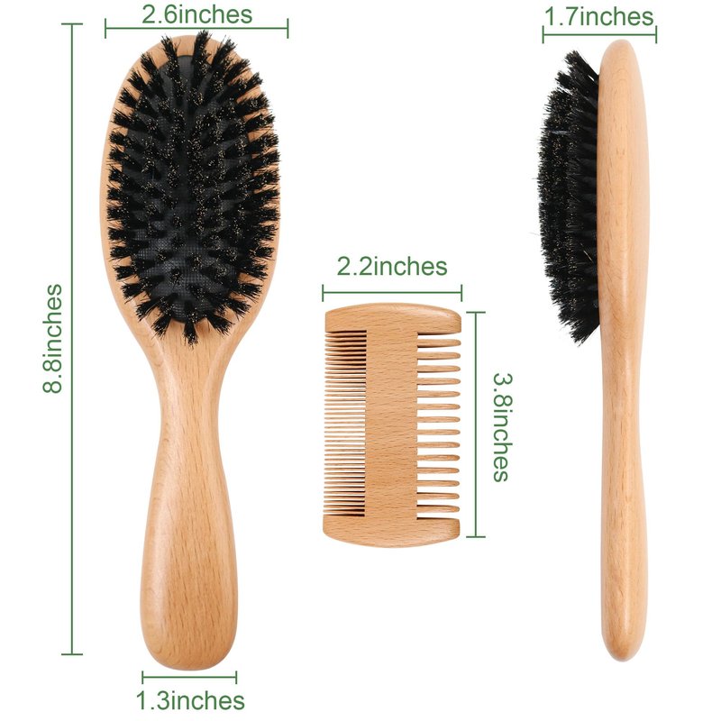 - Complete hair brush set:This hairbrush kit come with one wooden boar bristle hair brush and one wooden double side hair comb.Suitable for a variety of your needs, better care for your hair.