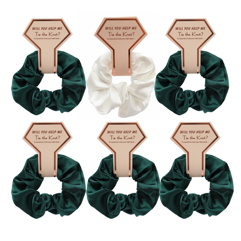 OWITER Satin Bridesmaid Scrunchies Bachelorette Hair Ties Set of 6 Bridal Shower No Damage Hairties ideas Gift for Wedding Party Favors Bridesmaid Proposal Gifts (dark green)