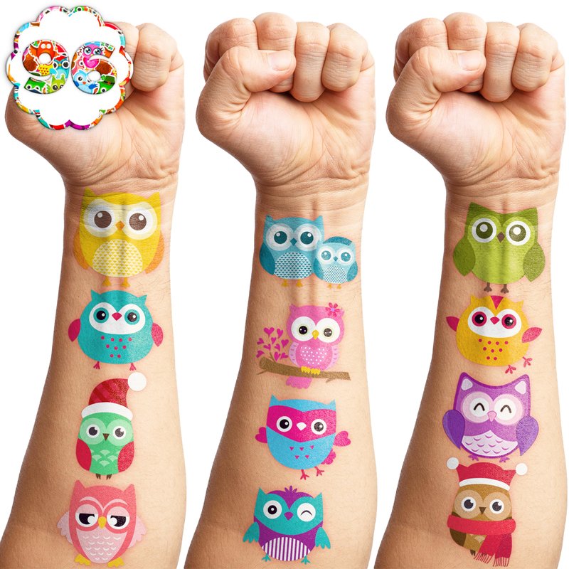 🦉【PERFECT TATTOOS FOR THEMED OWL DECORATIONS】: Owl temporary tattoo stickers include 8 sheets in total. There are 96Pcs super cute tattoo differences. Perfect for giving out party favors and holiday theme small gifts. The size of each sheet is 6.1 * 3.1 inches. One size fits kids. 🎁【GREAT GIFT IDEAS FOR OWL PARTY SUPPLIES AND DECORATIONS】: You will receive many compliments when you decorate your child's birthday party with a Owl theme. Owl tattoos are a small gift you should not pass up for your kids. 🥳【ADD A TOUCH OF FUN】: Are you tired of mundane gifts? We've got you covered! Our collection of adorable and vibrant temporary tattoo designs can be applied to laptops, backpacks, desks, suitcases, books, water cups, and more. These playful elements will surely elevate your visual experience and bring a touch of joy to everyday items. 🌍【SAFE AND ENVIRONMENTALLY CONSCIOUS】: Our temporary tattoos are made from materials that are safe and prioritize sustainability. These tattoos are created using paper that is both safe for users and friendly to the environment. 🌴【EASY TO USE AND REMOVE】: Cut each tattoo out of sheets and remove the sheet clearly. You can stick it on hands, face, arms or wherever you feel safe. Moreover, you put it down on glasses, clothes, and a smooth flat . After that, you wet it thoroughly with water and wait for 20-30 seconds, you get rid of the backing paper. As a result, you have a velvety tattoo as we say. 👍【PERFECT SERVICE】: If you have difficulty using our product, contact us. We will make sure to solve problems and help you have a wonderful buying experience.