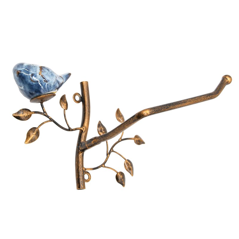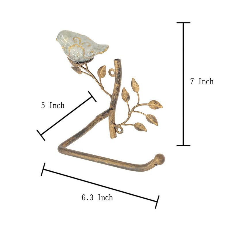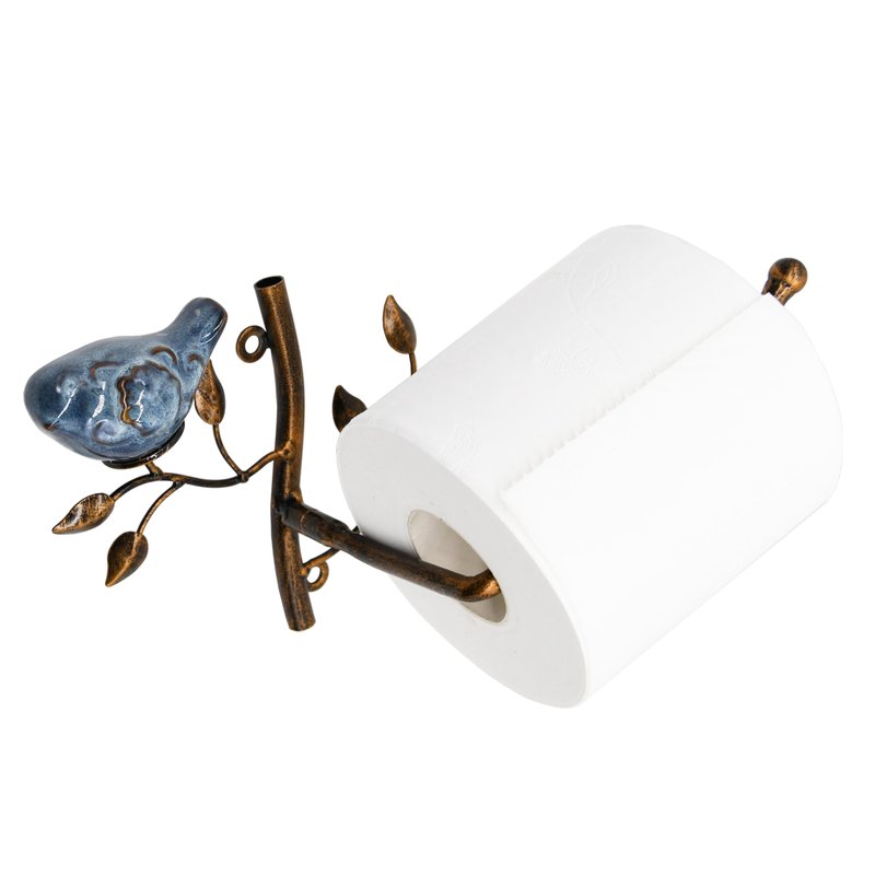 Owlgift Wall Mounted Metal Toilet Tissue Holder w/Ceramic Bird, Roll Organizer for Bathroom - Bronze
