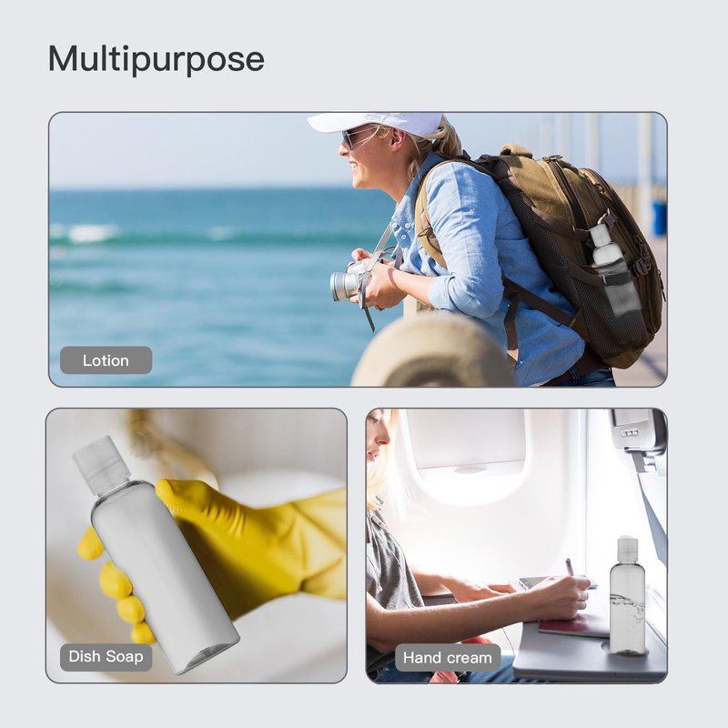 - High-quality material: These travel size containers are made of durable PET plastic, strong hardness, lightweight, not breakable, don't be worry about the liquids will spill out. BPA-free, non-poisonous, odorless, reusable.