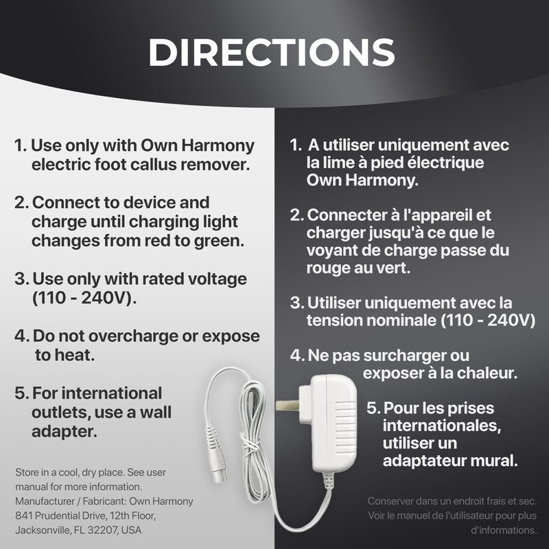 Own Harmony Charging Adaptor for Electric Foot Callus Remover Models CR900, CR2100, CR1700 - Charger Works Only with Nail Care Kit & Pedicure Tools by Own Harmony