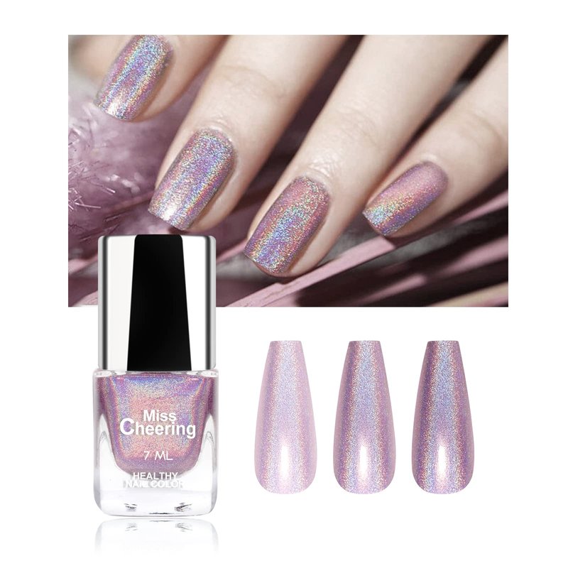 - 【Holographic Effect】Made with holographic pigments, Shifts Colors Based On Viewing Angles, high Gloss and Sparkle Glitter Shine, give glossy and long-lasting nail color.The nail effect display in the picture is the effect of applying 3-4 layers. The laser effect will produce different effects according to the light and the angle.