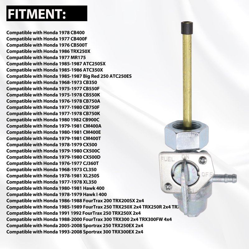 OXCANO Fuel Tank Shut Off Valve Petcock Compatible with Honda XR650L CB450T Hawk CB750K CB750F CBX1000 CM250T Custom CM450A Twin Automatik CM450C FT500 GL650D Silver Wing De-luxe VF500F Interceptor