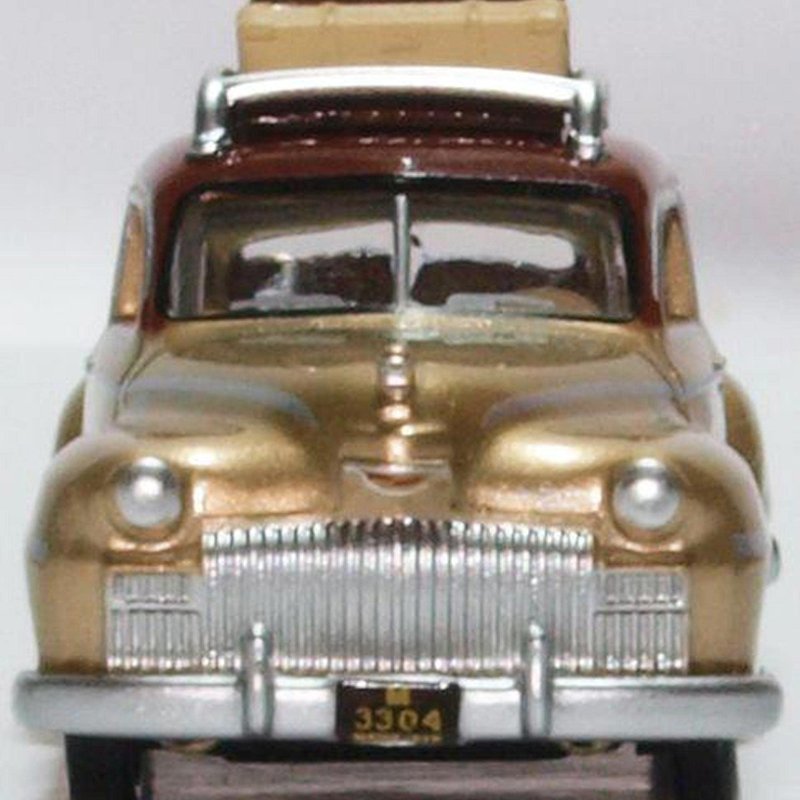 Oxford Diecast - Desoto Suburban 1946-48 San Francisco Taxi - 1/87 scale model for display with HO scale trains. Not a toy. From the manufacturer: The San Francisco Taxi is decorated in the familiar US taxicab yellow but sporting bright red masking to the front and rear wings, the external trim is finished in silver and the windows all feature a pale grey tint. The taxi is promoting its fare tariff on the front doors whilst the roof carries the TAXI light bar. Registered CAL 46 10 K 950, a final detail sees the interior molded in brown. Our model is tooled up on the 1946 version of the DeSoto Suburban, which in real life continued in production until 1954.