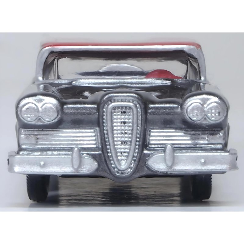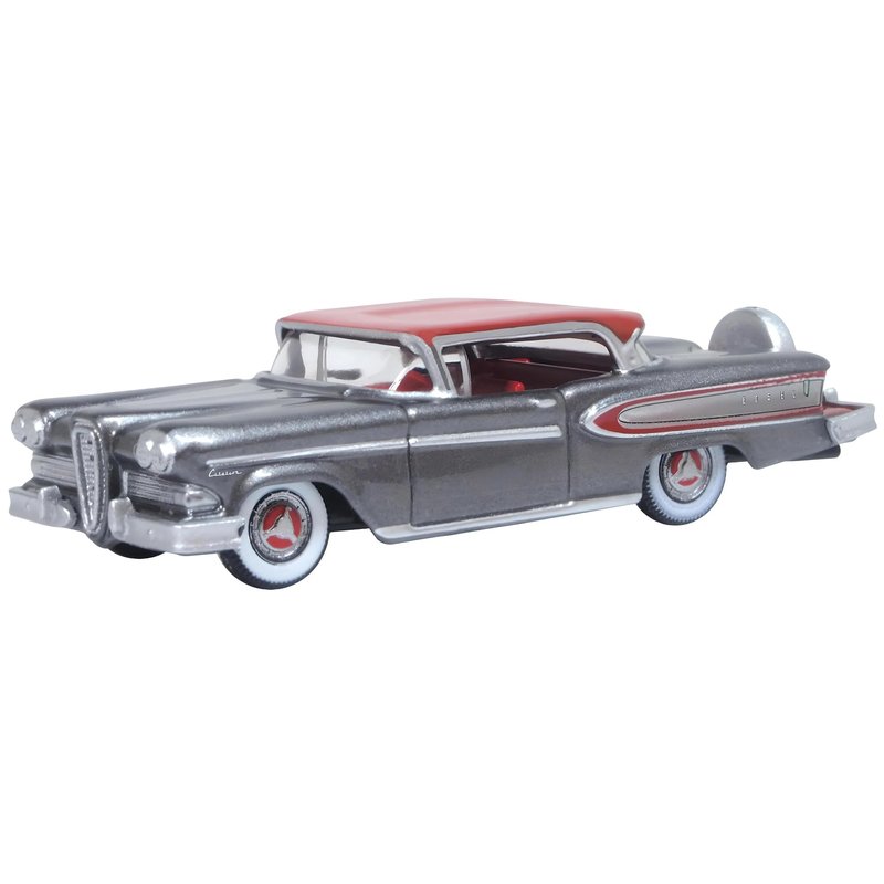 Brand new 1/87 (HO) scale diecast car model of 1958 Edsel Citation Silver Gray Metallic with Ember Red Top and Red Interior die cast model car by Oxford Diecast 87ED58008