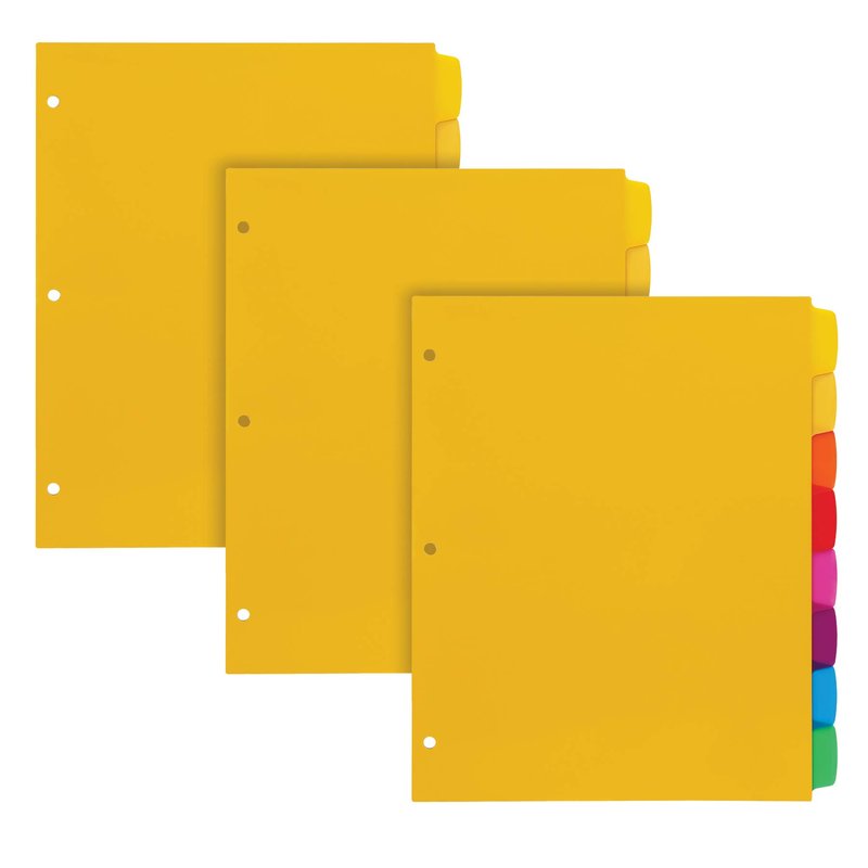 - Brings built in color coding efficiency to office binder projects, school binders or homeschool assignments; in yellow, red, yellow-orange, pink, purple, orange, blue and green