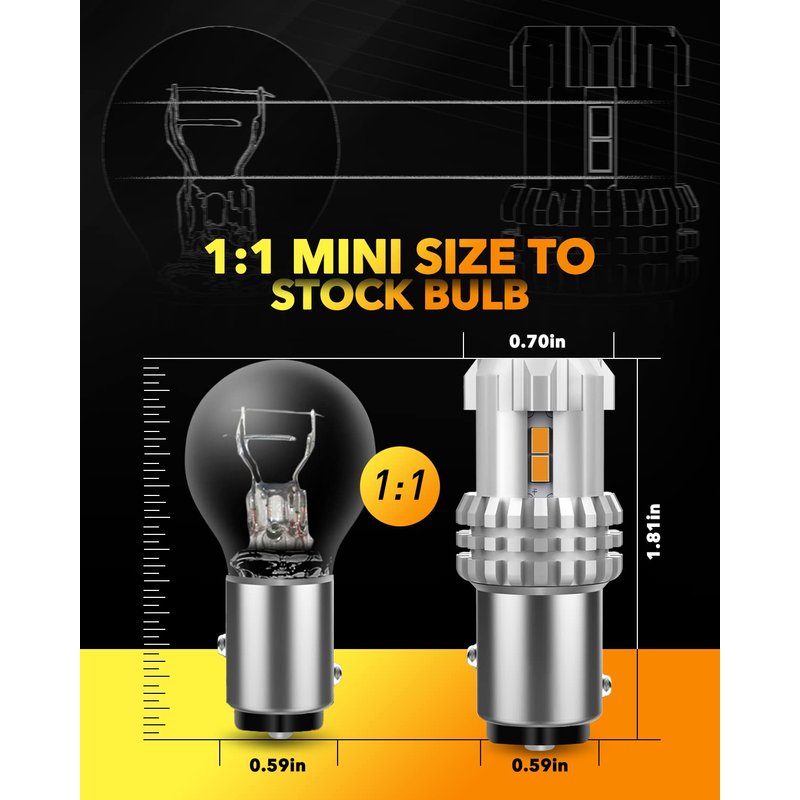 - Easy Installation: The 1157 LED amber bulbs are compatible with 1157, BAY15D, 1157A, 1178A, 1196, 2057 2057A, 2357, 2357A, 2357NA, 2397, 7528 etc. Similar size to the halogen bulb, just plug and play.