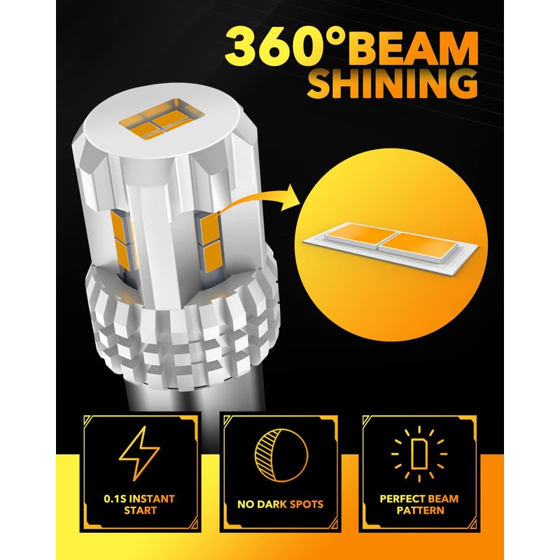 - Safer and Quicker: 360° shining without dark spots, the 1157 turn signal light bulb is instant start, no delay, safe and reliable enough, no glare to other drivers.