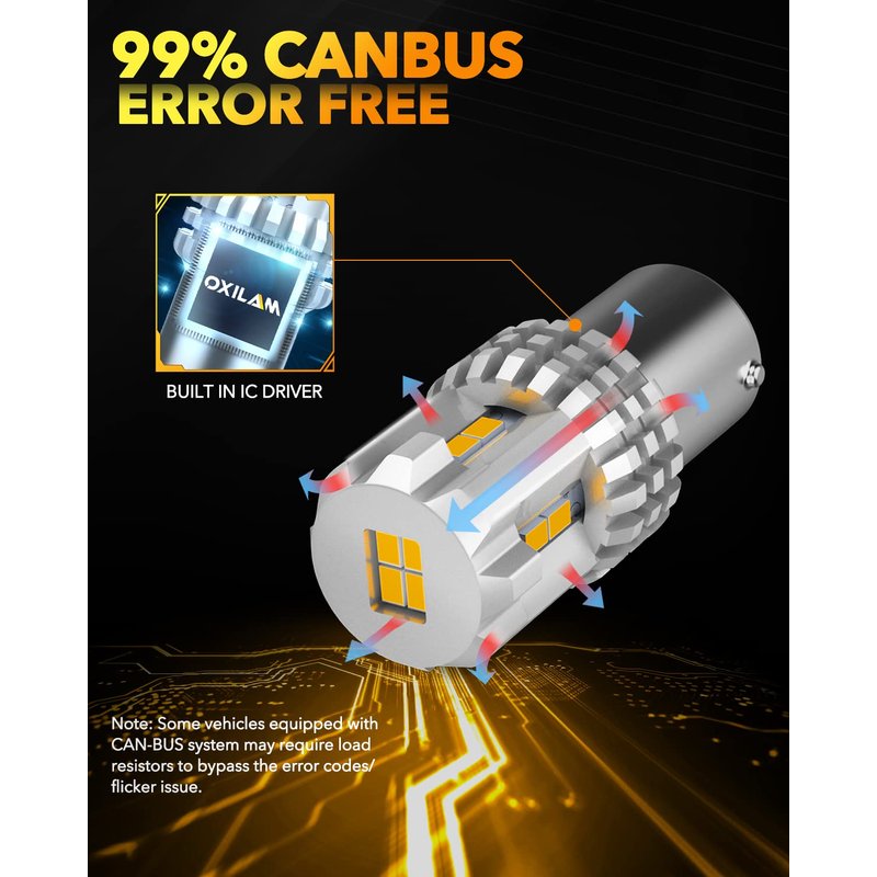 OXILAM 1157 2057 2357 7528 BAY15D LED Bulb Amber Yellow Replacement for Turn Signal Light, Brake Lights, Tail Lights, Blinker Lights, Side Marker Light Extremely Bright