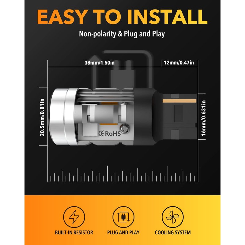 - FITMENT & SPECIFICATION: Fit for turn signal light ONLY. Cross Reference: 7443 7440 7444NA 7441 WY21W W21W T20,etc. Voltage: DC 12V, High Power: 8w/bulb (Other LEDS on the market are 4 to 6w/bulb). Lumen: 4000lm/pair, Color: amber yellow.