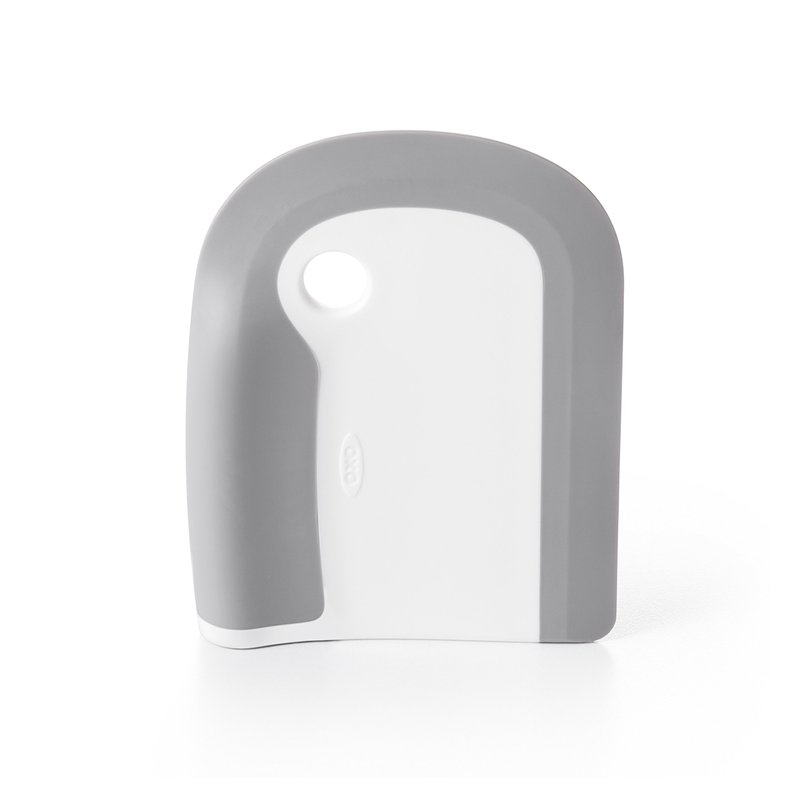 - Flexible squeegee edge efficiently clears leftover food from plates and bowls