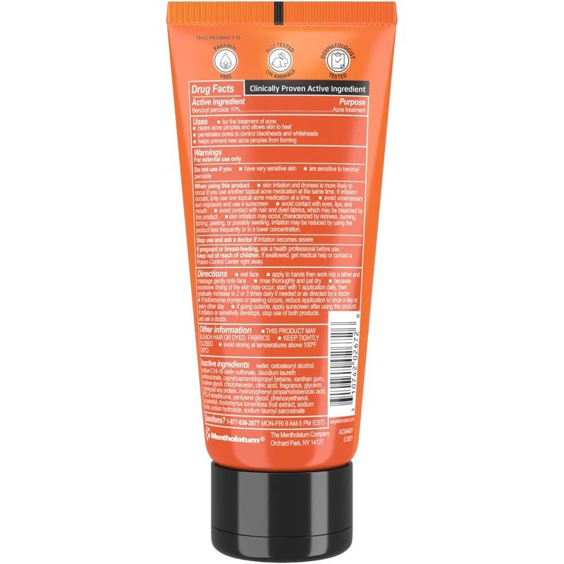 - With 10% Benzoyl peroxide - the maximum level allowed by the FDA for over-the-counter acne treatments. Oxy Face wash with Benzoyl peroxide treats and helps prevent acne while it cleanses away dirt and oil. Its creamy rich lather will leave your skin feeling fresh and clean.