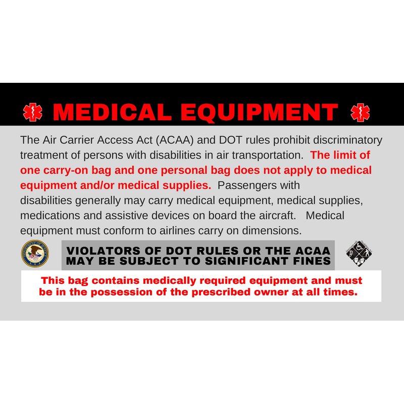 - Reminds Airline employees of DOT And ACAA regulations to never separate medical equipment from the prescribed owner.