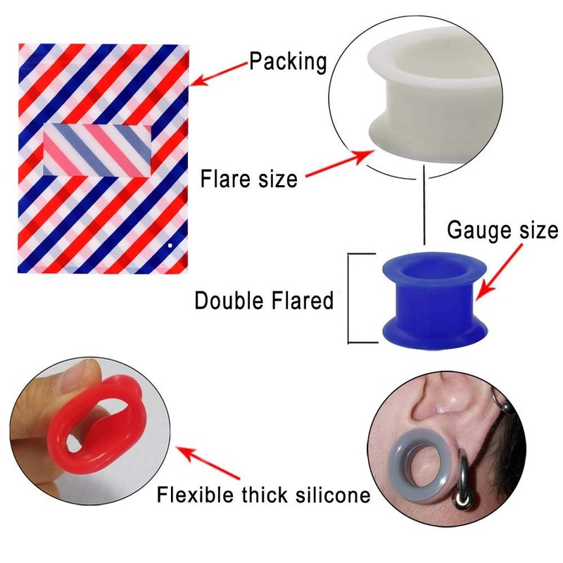 - MATERIAL: Flexible Silicone Rubber Material is Specifically Designed to Aid Healing and Healthy Piercings. Perfect Choice for Those who Suffer From Allergic Reactions to Metals and Less Painful to Stretch Your Ear Lobe.