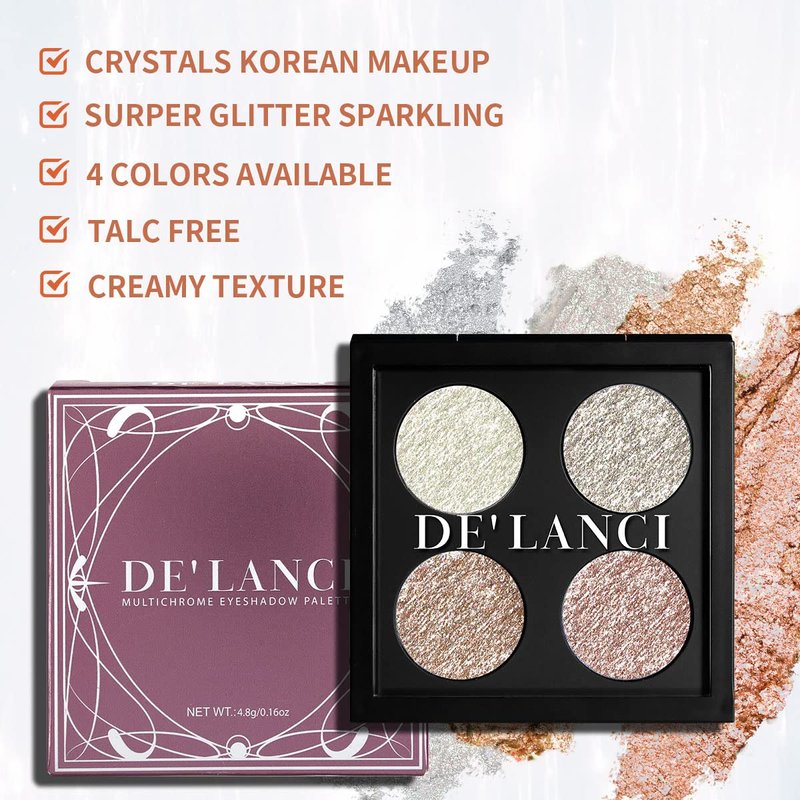 - ❤【The 4 color sparkle glitter eyeshadows palette】 : The 4 colors pressed luminescent glitter eyeshadow palettes include :glitter chameleon eyeshadow (white to gold),shimmer silver white color pearl ,shimmer natural warm champagne color,and shiny classic warm brown color.The high-shine metallic eyeshadow palette fit for beginners and professional to daily or party eyes /face/highlight makeup.