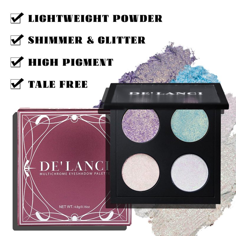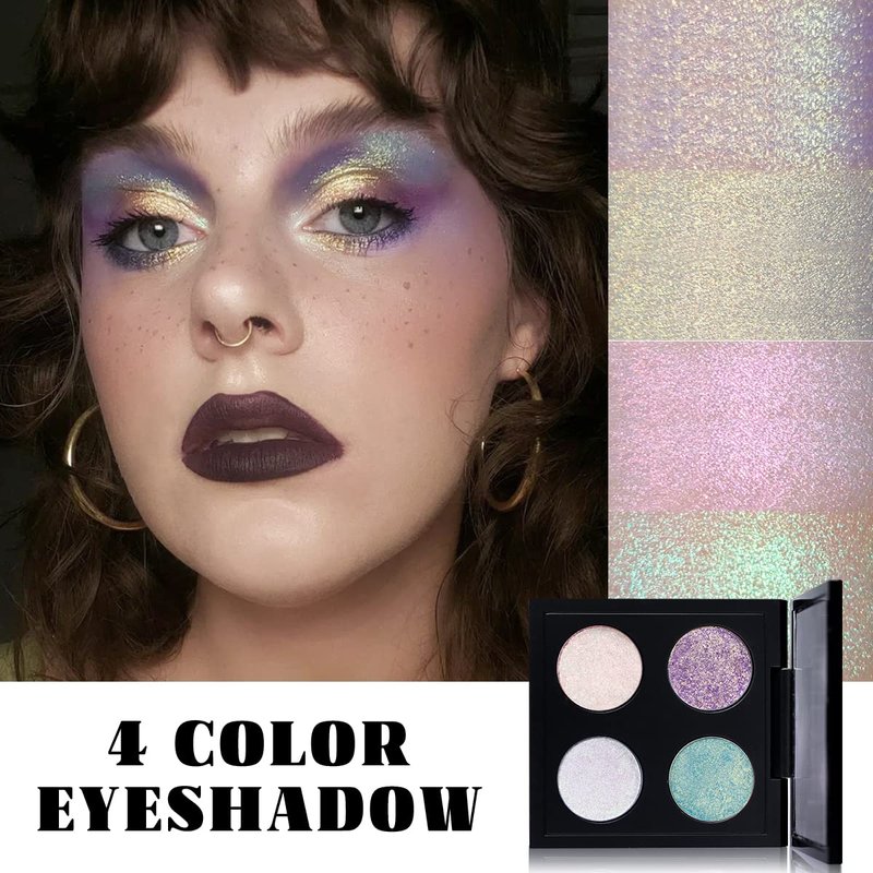 - Each eyeshadow in this palette boasts a holographic metallic finish, offering intense color-shifting effects that will make your eyes sparkle and shine.