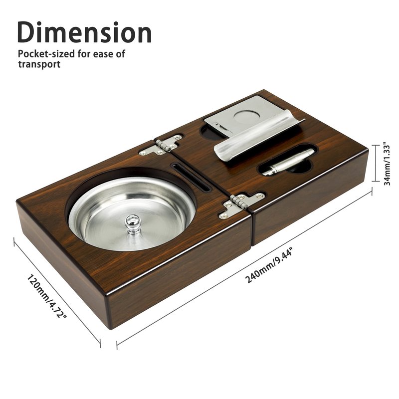 - Perfect for Travel - Size: Folded-4.72x4.72x2.6 inches (12x12x6.6cm) unfolded-9.44x4.72x1.33 inches (24x12x3.3cm), this cigar ashtray is portable and perfect for travel.