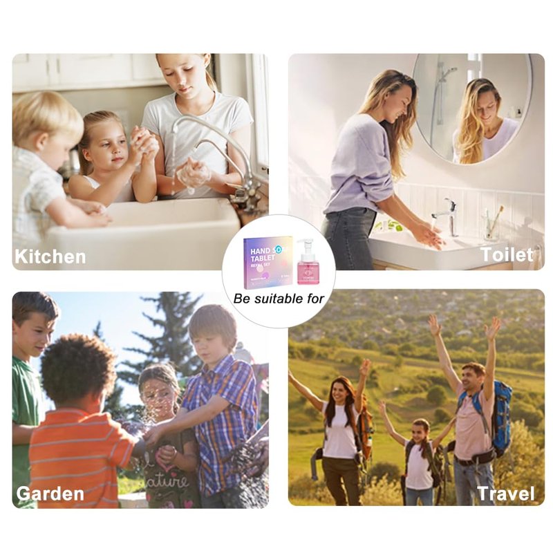 - 【Notes for Use】You simply place a foaming hand soap tablet into 9fl oz, warm water at 40-60 °C and wait 20-40 minutes to get a 250ml bottle of eco-friendly, fragrant foam hand soap. Don't be surprised, this foaming hand soap refill has the same cleaning and moisturizing properties as foaming hand soap, but it's more portable, eco-friendly, and a favorite for kitchen, bathroom, and commercial foaming soap dispenser pump