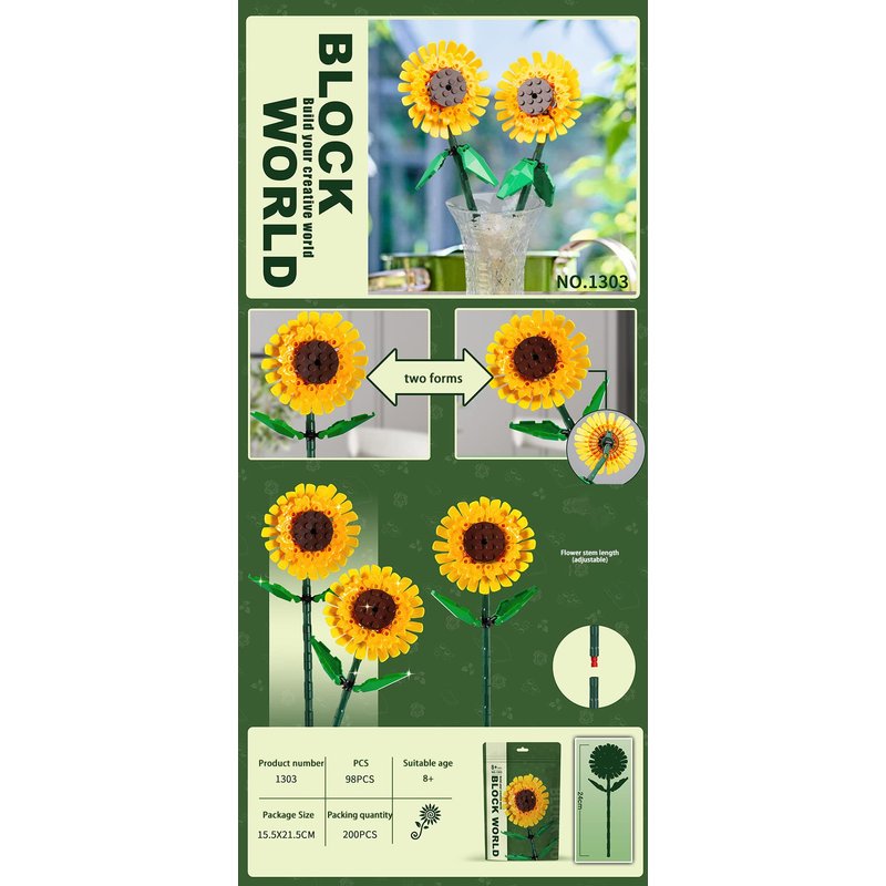 OYSTERBOY Sunflower Flower Bouquet DIY Building Block Set Creative Toy Gift for Girlfriends Wife Women (1pc Set)